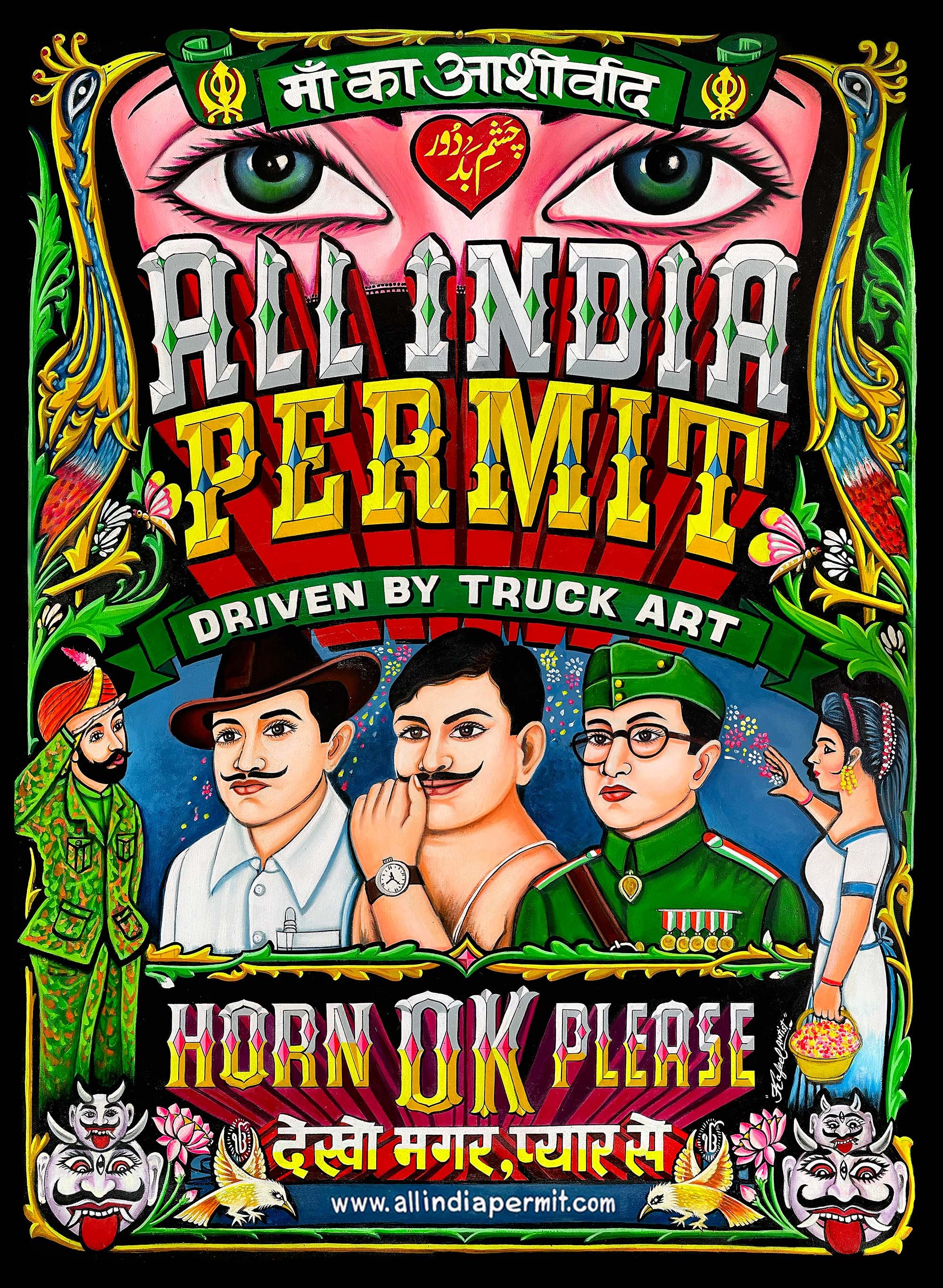 Hand-painted All India Permit artworks by painter Kafeel and painter Shabbu were glued and blasted across the streets, bringing some Indian street art to Amsterdam.